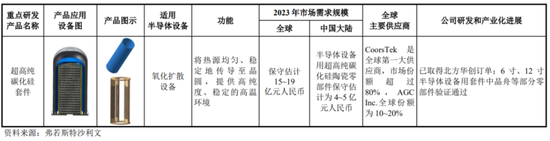公司的超高纯碳化硅套件现在处于客户考证阶段,国内市集限度保守料想为4-5亿元,外洋市集15-19亿元。